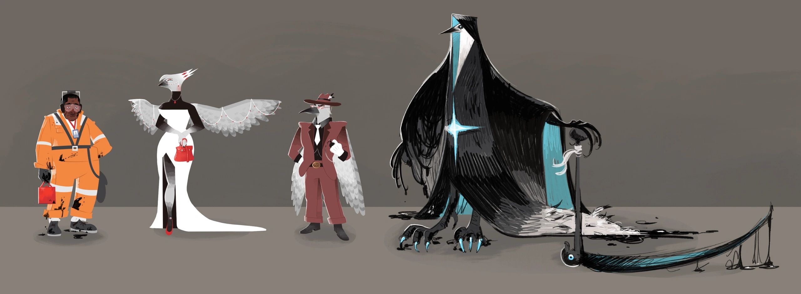 Character lineup of The Comet, reimagined as a 2 player survival game